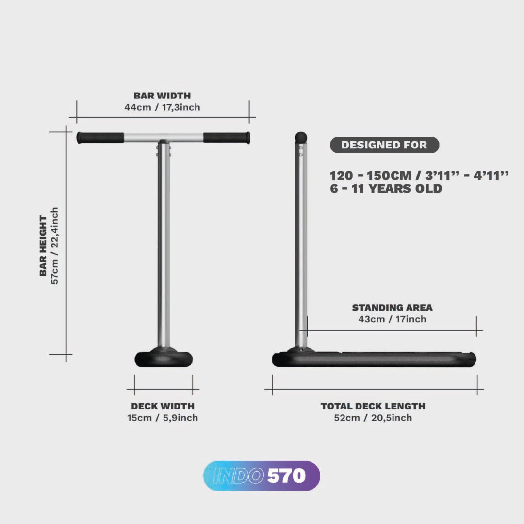 Der INDO pro ist der perfekte Trick-Scooter für fortgeschrittene Fahrer, um ihre Tricks zu perfektionieren. Er bietet mehr Kontrolle als die X70-Modelle dank des ultraschnellen INDO-Kompressionssystems, der größeren Größe und des höheren Gewichts sowie der besseren Gewichtsverteilung. Er ist für Trampoline und Innenräume geeignet.